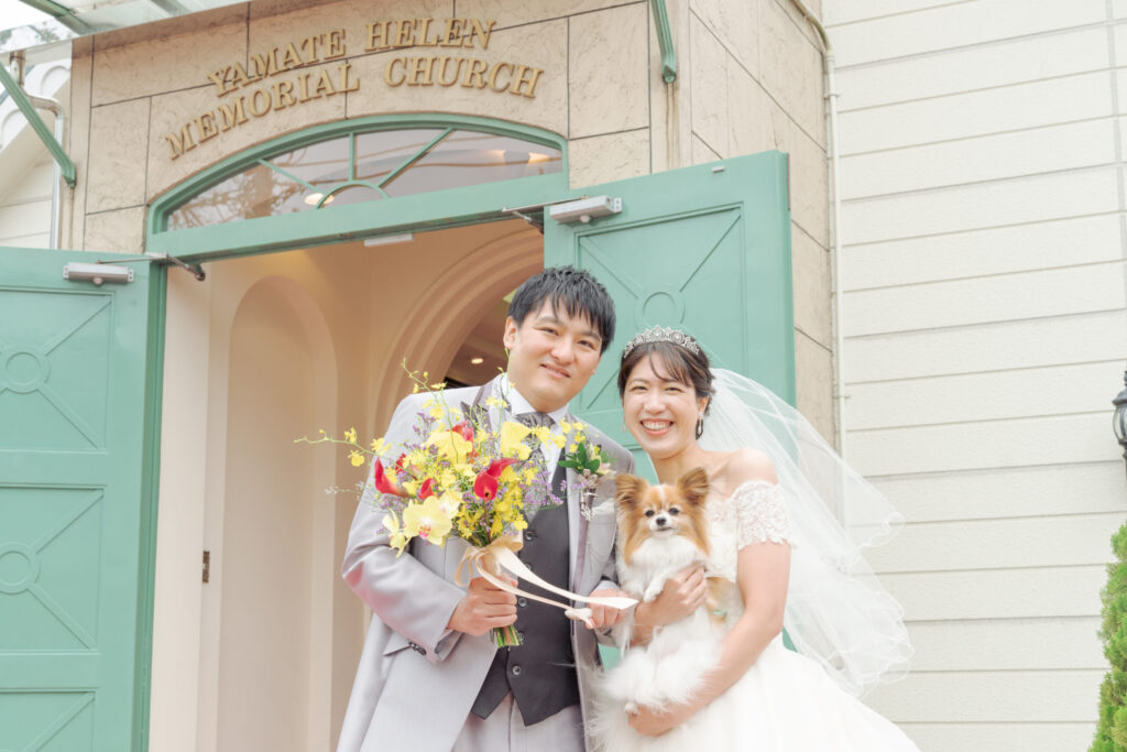 山手ヘレン記念教会、ザ・ローズレジデンスではワンちゃんと一緒にウェディングができます♪フォトウェディングや挙式+お食事会もOK。お気軽にご相談ください!